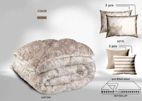 لحاف:یک رو طرح دار + یک رو ساده ابعاد لحاف:170*235 روبالشتی: طرحدار 2 عدد ابعاد روبالشتی:50*70 کوسن:طرحدار 1 عدد ملحفه:کش دوزی یک عدد ابعاد ملحفه:120*200