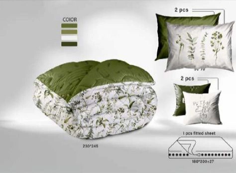 لحاف:یک رو طرح دار + یک رو ساده ابعاد لحاف:170*235 روبالشتی: طرحدار 2 عدد ابعاد روبالشتی:50*70 کوسن:طرحدار 1 عدد ملحفه:کش دوزی یک عدد ابعاد ملحفه:120*200