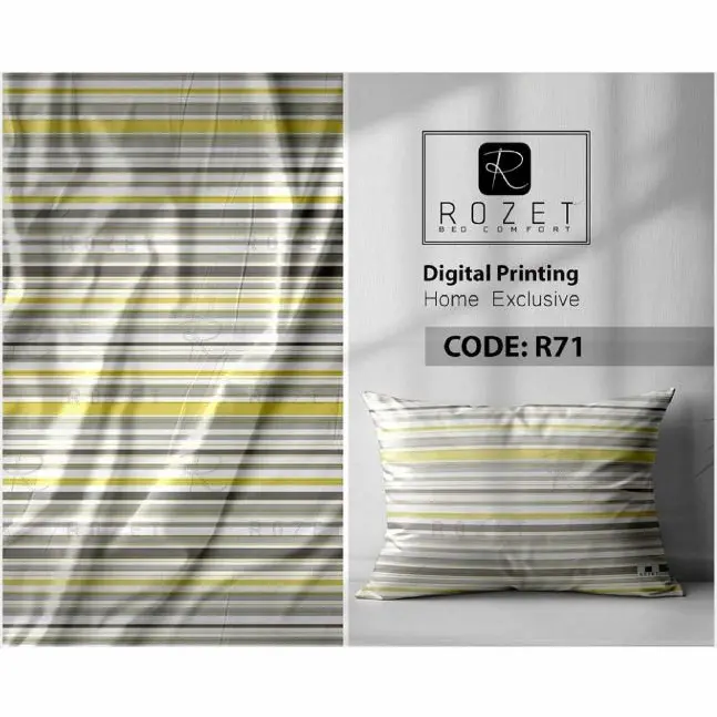 روتختی دو نفره رزت طرح راه راه زرد و طوسی سری R71 یک انتخاب لوکس و شیک برای اتاق خواب است که بهواسطه بافت خاص و نرم پارچه ساتن، جلوهای متفاوت و زیبا به اتاق میبخشد. این روتختیها با طرحهای زیبا و بافت متناسب، به راحتی میتوانند فضای اتاق شما را تبدیل به محیطی آرامشبخش و دلنشین کنند. پارچه ساتن با سطح نرم و براق خود، به اتاق خواب شما ظاهری مجلل و درخشان میدهد.