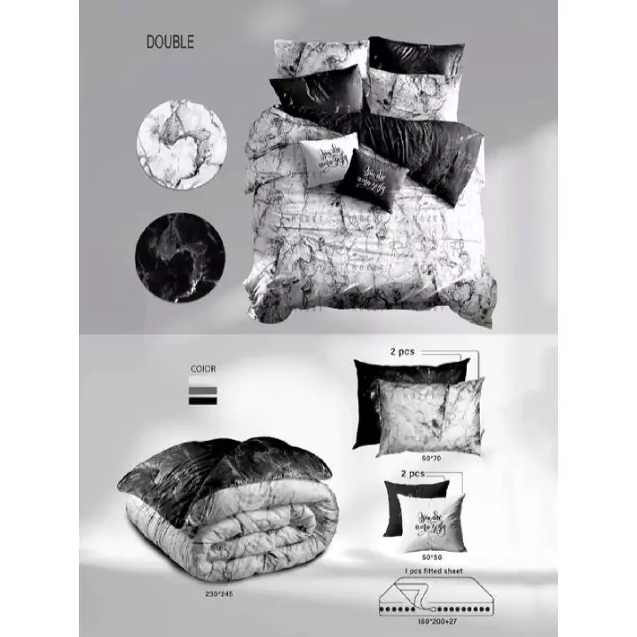 روتختی دو نفره رزت طرح سنگ سفیدمشکی سری RZ14 یک روتختی با طراحی شیک و مدرن است که از دو طرف قابل استفاده میباشد. این روتختی با استفاده از پارچه ساتن بافتی ساخته شده که ظاهری لطیف، نرم و با دوام دارد و راحتی و آرامش کامل را در هنگام خواب به ارمغان میآورد. طرحهای زیبا و متنوع این روتختی، فضای اتاق خواب شما را به شکلی خاص و جذاب تزئین میکند. همچنین، دورویی بودن آن این امکان را به شما میدهد که به راحتی از هر طرف آن استفاده کنید و ظاهری متفاوت به تختتان بدهید. این روتختی نه تنها از لحاظ ظاهری جذاب است بلکه با کیفیت بالا و دوام زیاد، انتخابی مناسب برای اتاق خواب شماست.